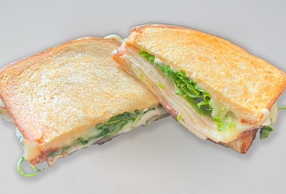 “America’s favorite sandwich, taken to an elevated level for sophisticated taste buds. A gourmet grilled cheese filled with fresh arugula, thinly sliced green apples, turkey, and scratch-made cranberry mayo, all in between ooey-gooey melted Brie and Havarti cheeses and buttery, crispy sourdough bread.”