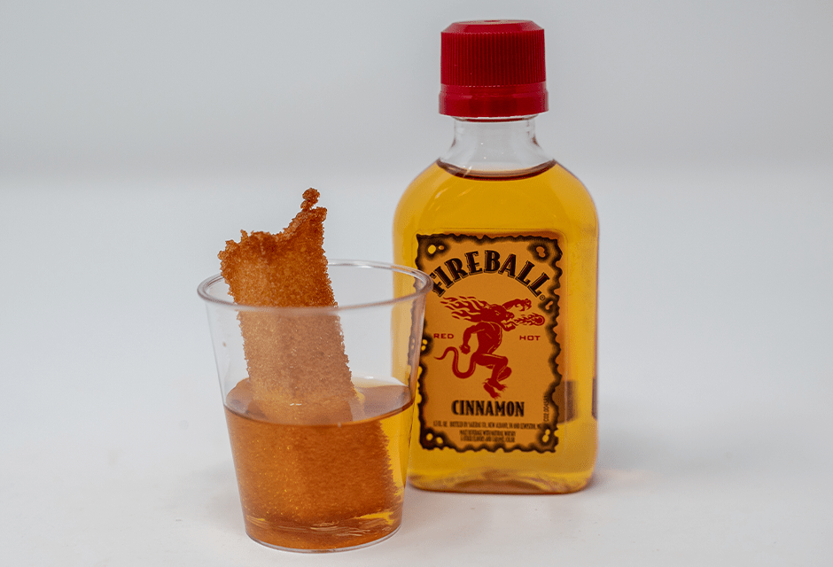 “The fluffy, airy, melt-in-your-mouth sweetness of angel food cake meets the red-hot and fiery cinnamon flavor of Fireball® Cinnamon malt liquor. After deep frying to a perfect golden brown, Fireball® Cinnamon is poured over the top and into a shot glass.