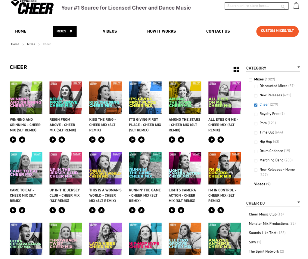 There is an entire industry of just Christian cheerleaders hooting, hollering, tumbling and smiling over songs by Miley Cyrus, Dua Lipa, Lizzo and DJ Khalid. There are even companies, Power Music Cheer is one, that create custom remixes for cheer teams. These mixes have names like “Grit & Glam”, “Catitude”, “Vicious and Ambitious”, “Came to Eat”, and “Ultra Extravaganza”.