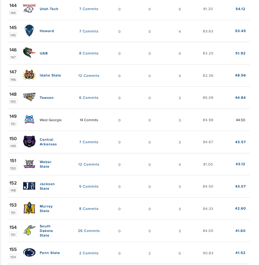 Penn State, a Big10 Team that receives north of $63 million in football revenue just from the conference each season, currently has a recruiting class that is objectively less talented than the classes recruited by Central Arkansas, West Georgia, and Utah Tech.